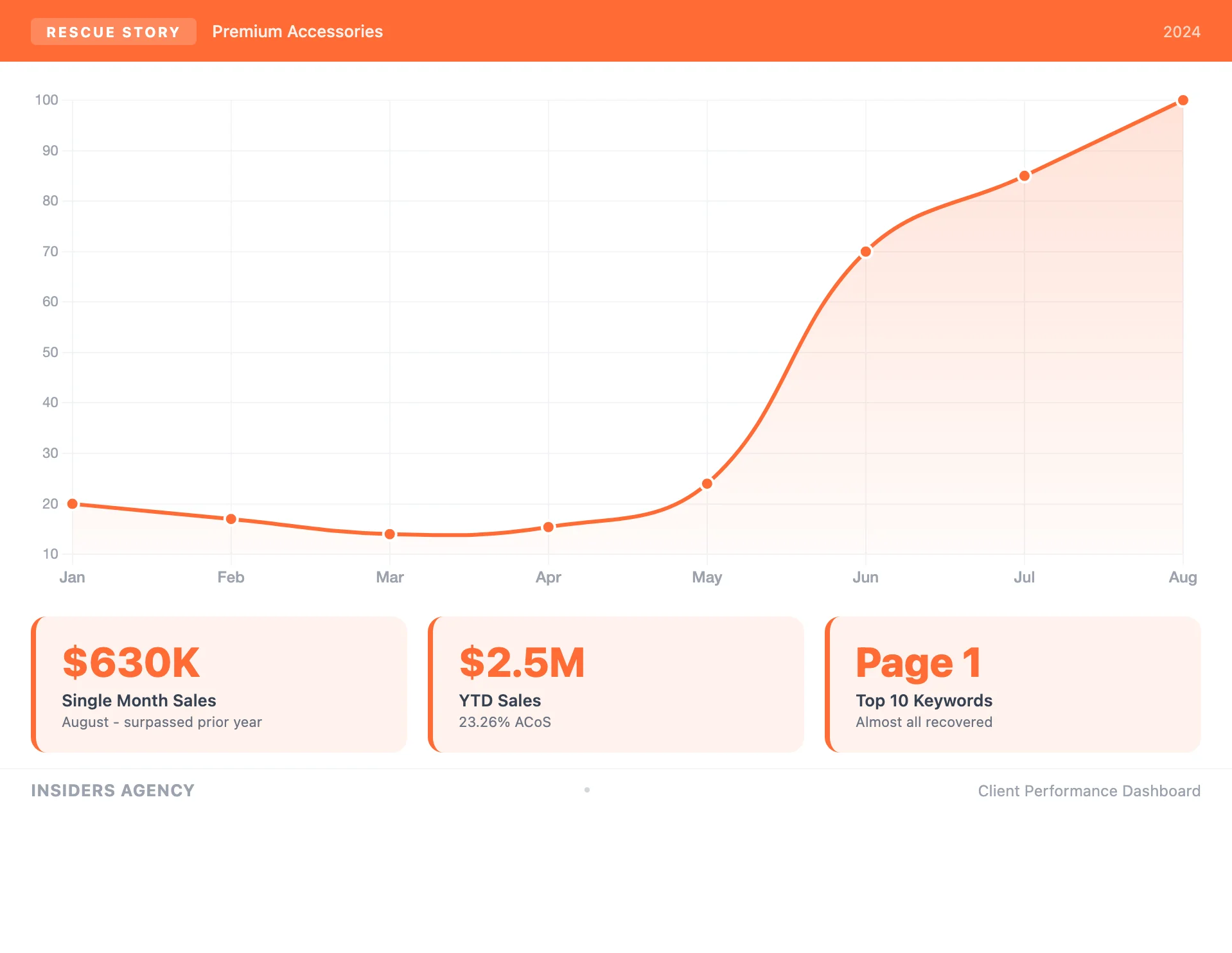 $630K in a single month, surpassing prior year. $2.5M YTD with 23.26% ACoS. Page 1 on almost all top 10 keywords. Ready to reclaim niche leadership in Q4.